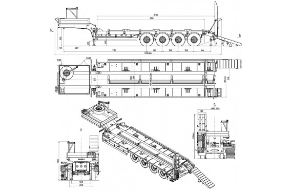 50000 кг, шины 385/65R22,5 или 445/65R22,5/ 6+1, присавные алюминиевые трапы, платформа 12200 мм, ССУ 1450 мм, пневматическая подвеска, раздвижные коники 1500 мм, съемные борта или без них, в ГАБАРИТЕ по ДЛИНЕ АВТОПОЕЗДА с КАМАЗ 6x6