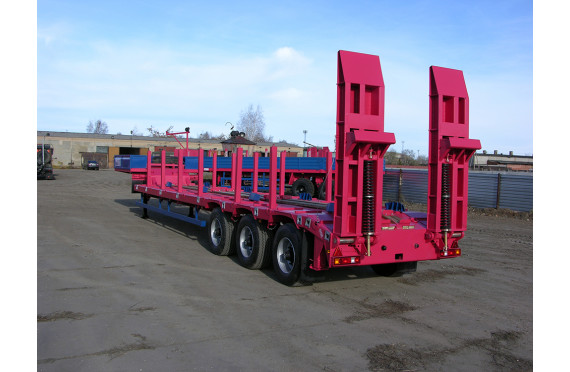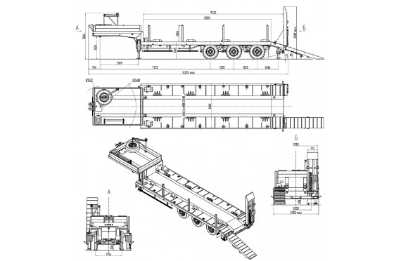 47000 кг, шины 445/65R22.5 или 395/85R20 / 6+1, платформа 9300 (10300 до трапов) x 2500 с уширителями до 3000 мм, механические трапы, пневматическая подвеска, съемные стойки 1500 мм