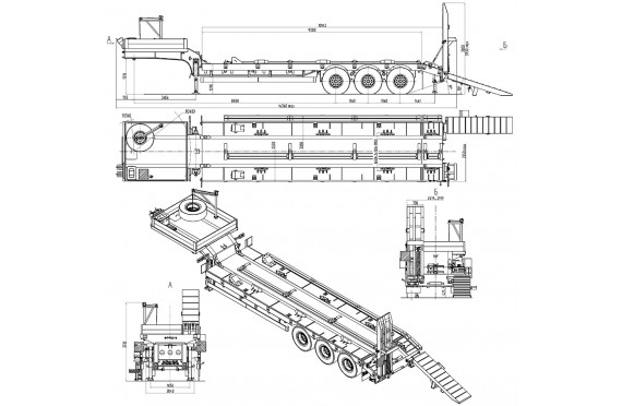41200 кг, шины 395/85R20 или 445/65R22,5 / 6+1, платформа 9280 (10142 до трапов) x 2530 с уширителями до 3030 мм, ССУ 1550 мм, рессорная или пневматическая подвеска, раздвижные коники