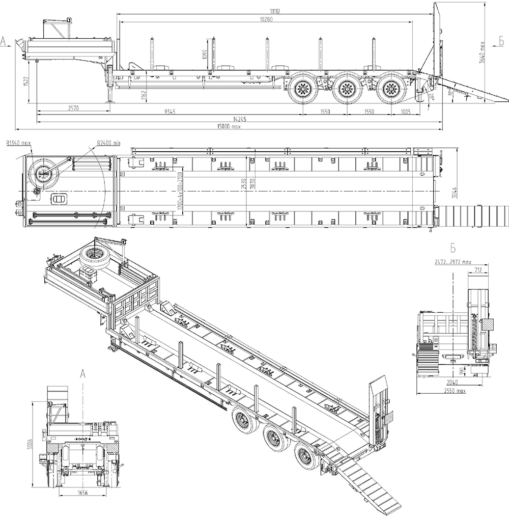 35000 кг, шины 385/65R22,5/6+1, платформа 10280 (11112 до трапов) x 2530 с уширителями до 3030 мм, ССУ 1522 мм, рессорная или пневматическая подвеска, съемные стойки, передний щит