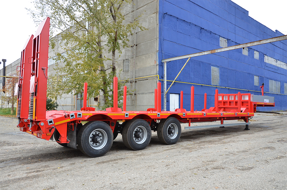 39000 кг, шины 385/65R22,5 или 445/65R22,5 / 6+1, платформа 11461 по трапам x 2500 с уширителями до 3000 мм, треугольные аппарели, ССУ 1430 мм, рессорная подвеска, съемные стойки или раздвижные коники 1500 мм, с бортами или без