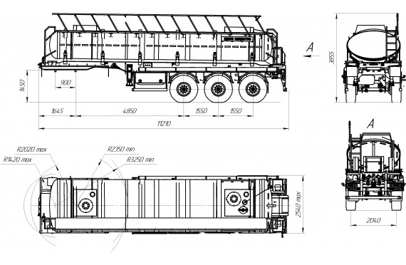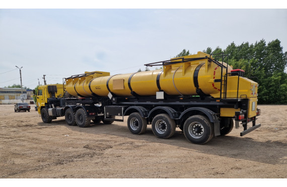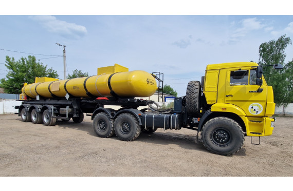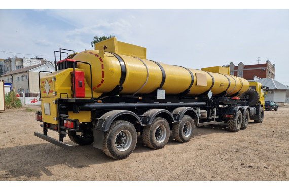 Материал: химстойкое стекловолокно, емкость: 30 куб.м., сечение круглое, конструкция: однослойная или трехслойная (текловолокно + утеплитель + стекловолокно), крепление: при помощи стяжных лент, перевозимые жидкости: нефть, автошины 385/65R22,5; первая ось - подъемная.