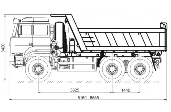 Колесная формула: 6х6 , Модель двигателя: ЯМЗ-652, рядный, Коробка передач: ZF 16S2220TD, тип - механическая, 16-ступенчатая , Тип кабины: над двигателем, двухместная, со спальным местом , Привод тормозной системы: пневматический , Шины: 16.00 R20, модель Бел-95 – радиальные, регулируемого давления с рисунком протектора повышенной проходимости. , Грузоподъемность: 19,1 т., Номинальная мощность: 412 л.с., Особенности комплектации: Задняя разгрузка, V= 13 м3, г/ц "НЕФАЗ", коробчатого типа, спальное место