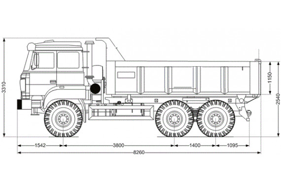 Колесная формула: 6х6 , Модель двигателя: ЯМЗ-53642 Дизельный, четырехтактный, с турбонаддувом, с охлаждением надувочного воздуха , Коробка передач: ЯМЗ -1105 механическая ,5-ст. , Тип кабины: Над двигателем, цельнометаллическа двухдверная, двухместная, со спальным местом , Привод тормозной системы: пневматический, двухконтурный привод, с АБС; тормозные механизмы всех колес – барабанные , Шины: 425/85R21 с регулируемым давлением КАМА-1260, Бел-1260, О-184 , Грузоподъемность: 11 т., Номинальная мощность: 285 л.с., Особенности комплектации: Задняя разгрузка, без/с задним бортом, Объем платформы, м3 8/9,5/12, со спальным местом